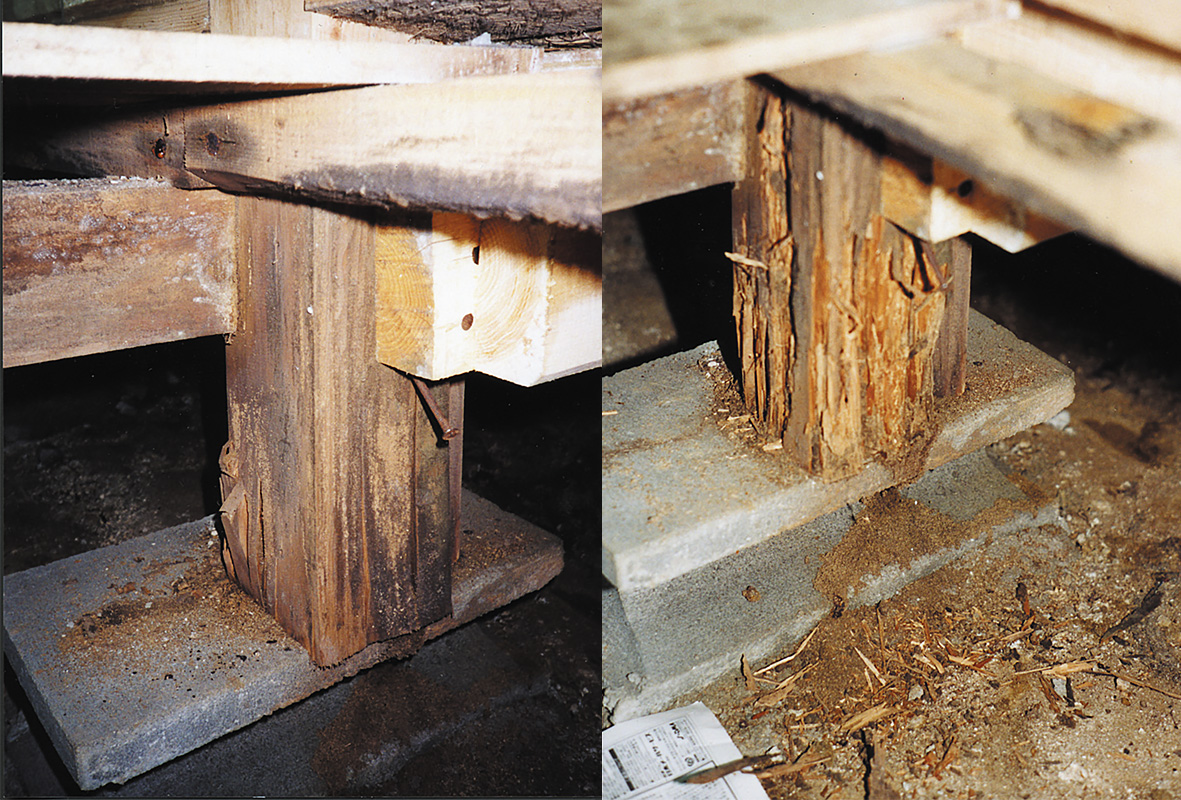 普段は枯れた木や落ち葉などを食べていますが、建物を見つけるとこれをエサとして食害しはじめます。